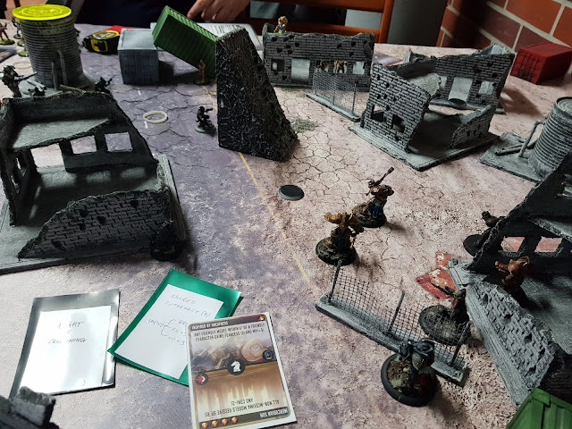 Na lewej flance zapomniany konflikt - Szaser pozostały po masakrze toczy nierówny bój z Inkwizytorem i Krzyżownikiem. Tym nie udaje się zidentyfikować znacznika.